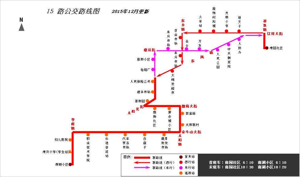 近期,由于市交管部門對東升路、東方路取消了單項通行禁令,結(jié)合現(xiàn)行公交線路走向布局,營運部門與承包車主協(xié)商后報請公司同意,從2015年12月6日起,對公交15路線路走向進行局部調(diào)整,具體情況如下: