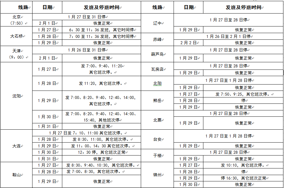 2017年春節(jié)假期班次發(fā)車時(shí)間